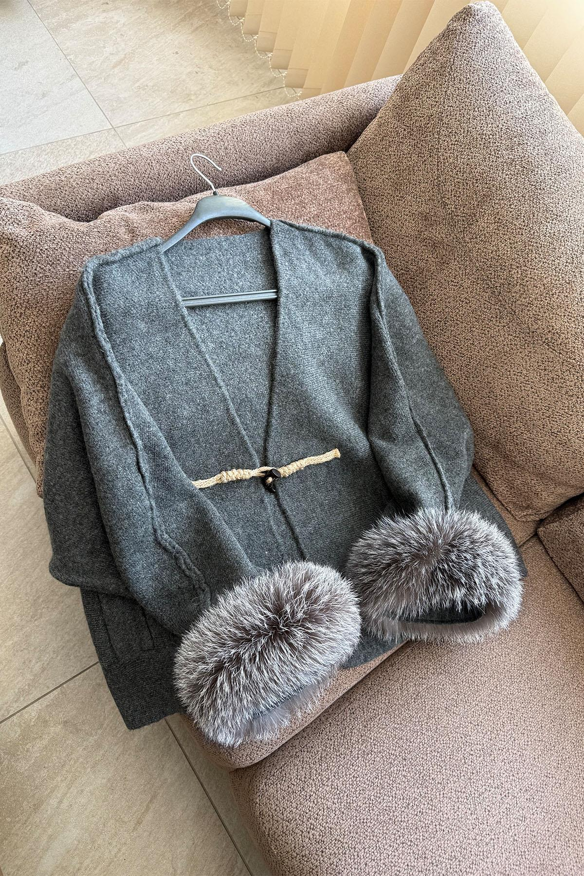 Gri Dev Kürklü Yün Panço