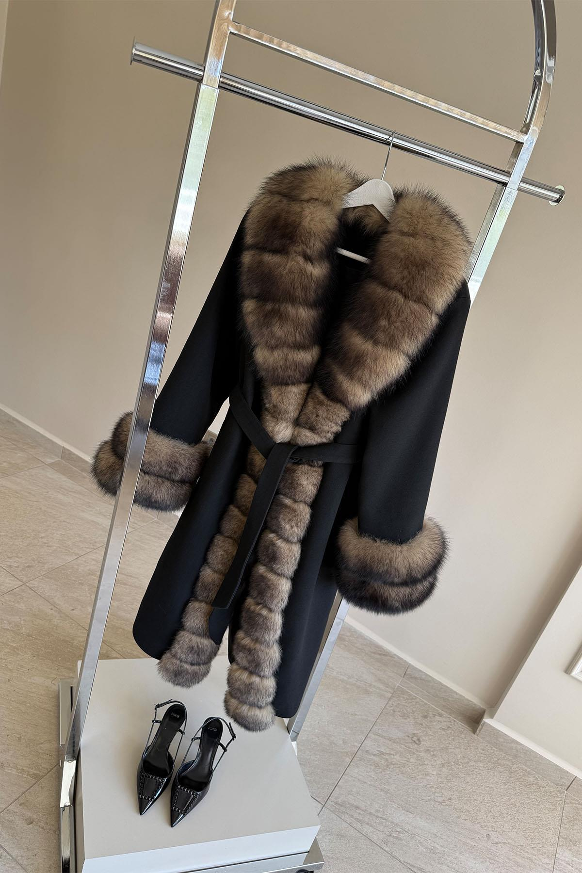 Maksi Boy Kahve Kürklü Kaşmir Kaban