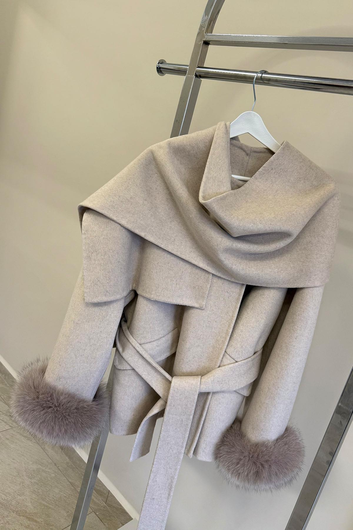 Şal Detaylı, Kolları Kürklü Bej Panço