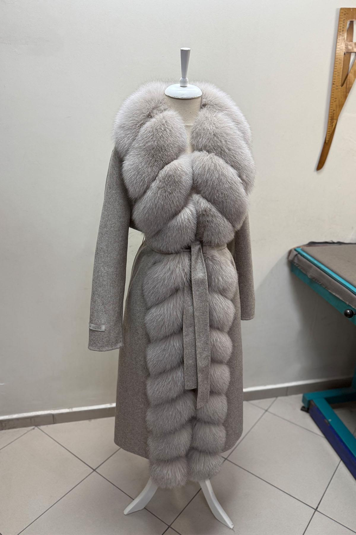 Ön kürkü V kesimdir, kürk cinsi tilkidir.